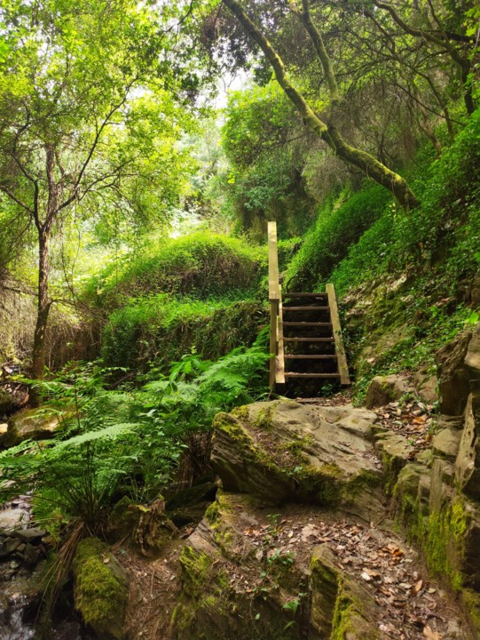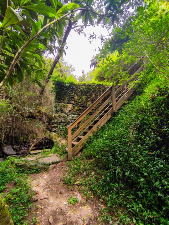 Para terminar temos umas escadas de madeira para subir e depois seguimos um pequeno carreiro até que começamos a ver à nossa frente as quedas de águas de Paredes.