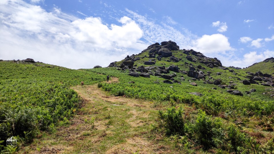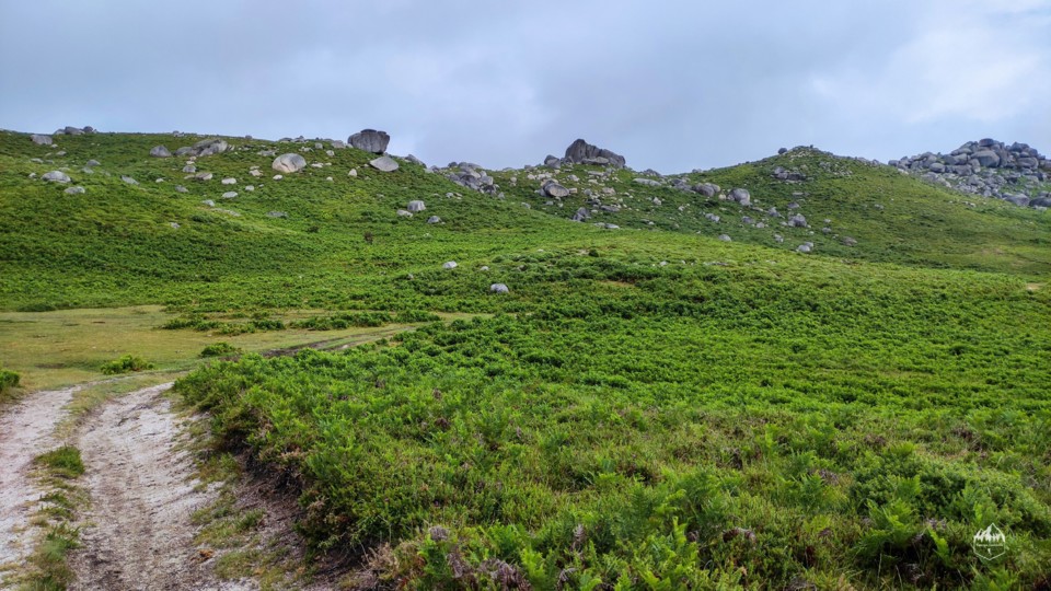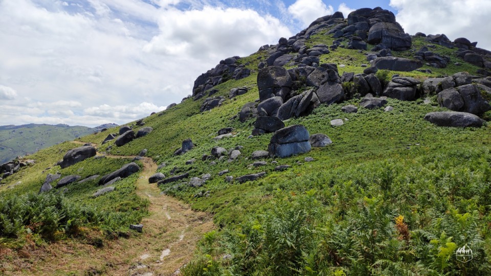 A diferença desta rota para a verde é que entra por zonas mais húmidas por vezes entramos dentro de uns vales entre as rochas e com vegetação mais densa.