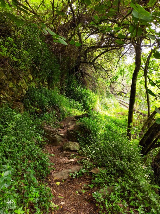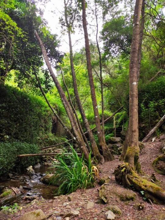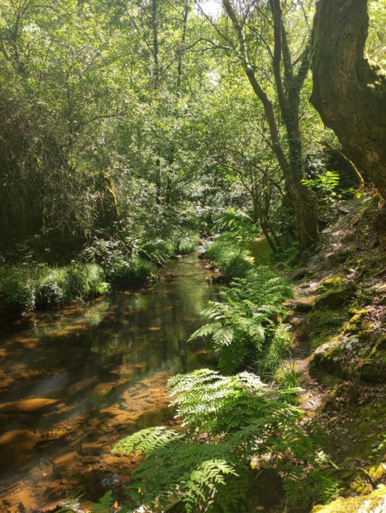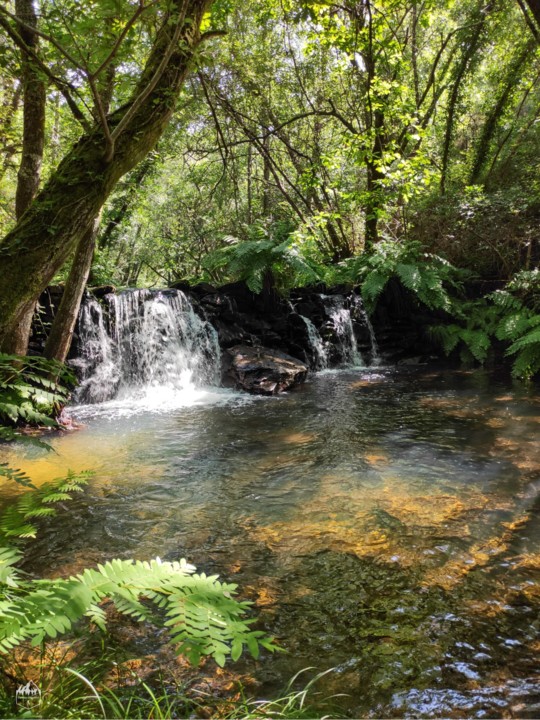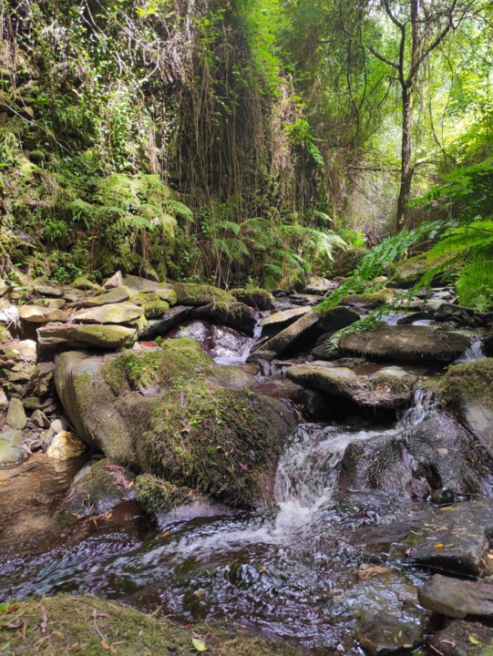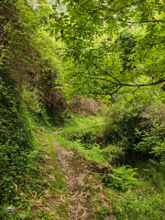 Durante o caminho vamos desfrutando de uma exuberante vegetação de tom verde intenso, a água é uma constante e por vezes vamos vendo algumas quedas de água.