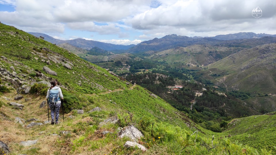 Depois vamos descer em direção ao Castelo de Bouro e durante a descida temos vistas espetaculares sobre a Serra Amarela e a Serra do Gerês.