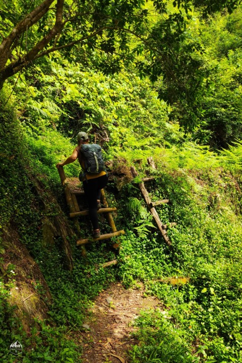 Durante o caminho podemos apreciar a verdejante paisagem sobre as ladeiras de cultivo (Socalcos).