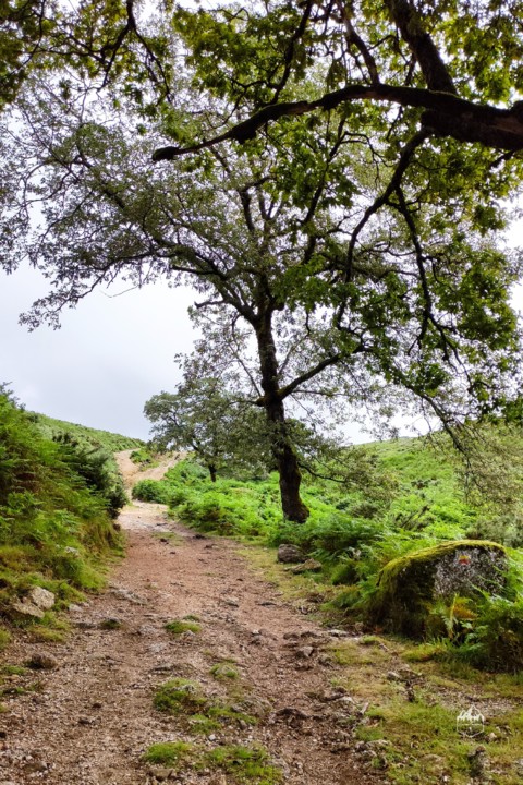 O percurso começa junto a uma estrada perto da aldeia de Laceiras e entra num trilho de terra batida.