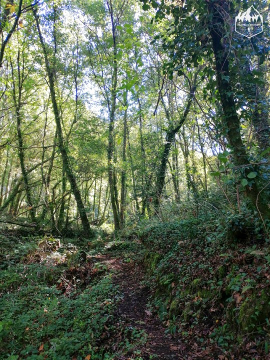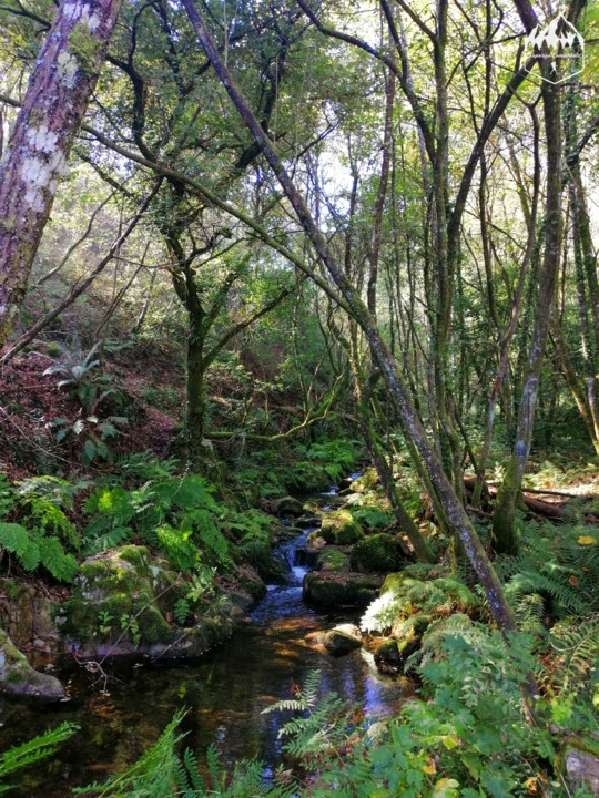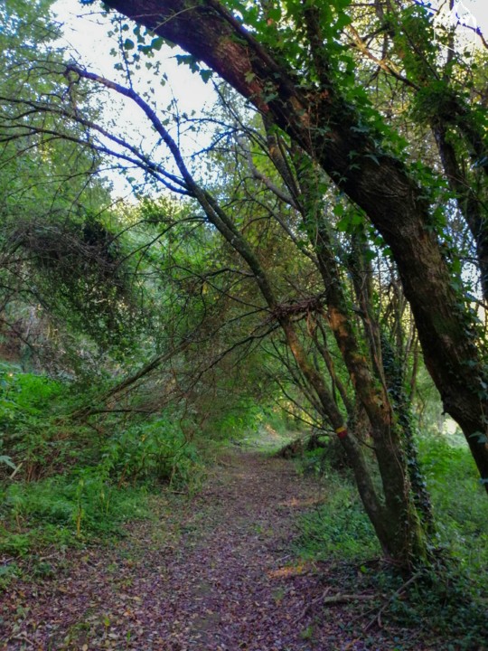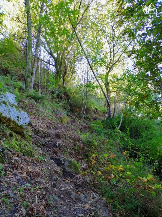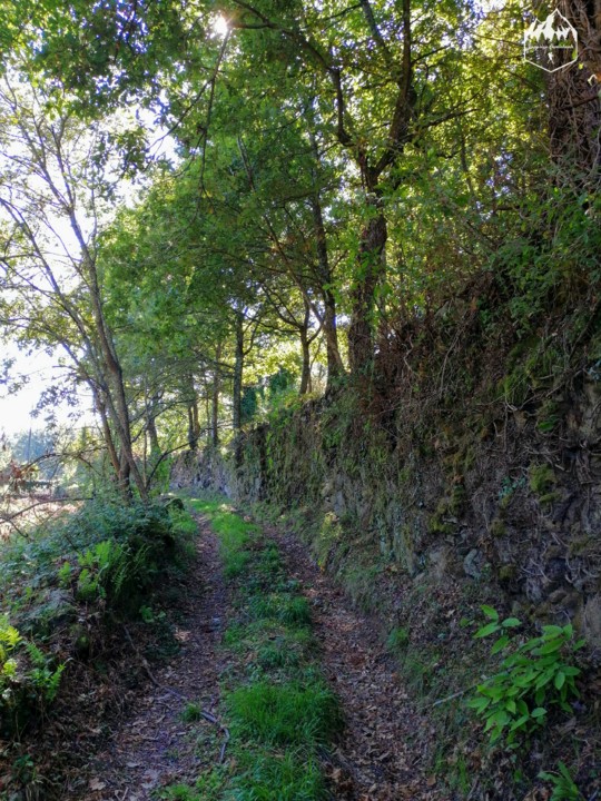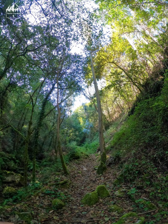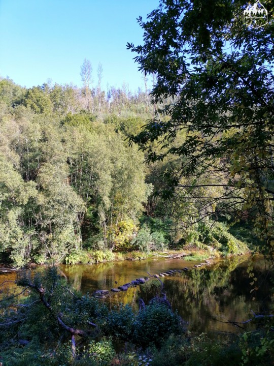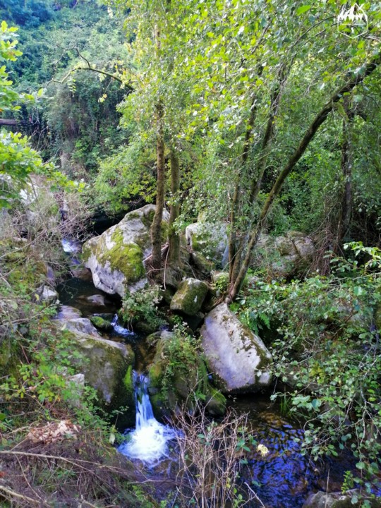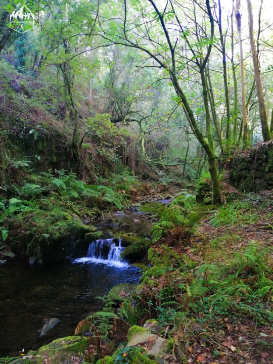 Estamos perto do rio, o som da água está cada vez mais perto e a natureza cobre-nos cada vez mais. Chegamos a uma ruína coberta de musgo, talvez uma casa? Se fosse moinho estaria mais junto à linha do rio, mas este edifício está mais afastado.