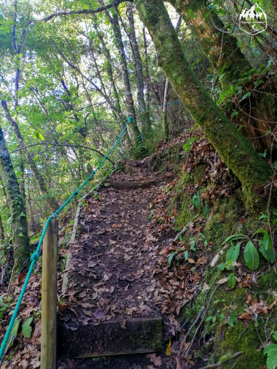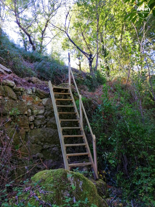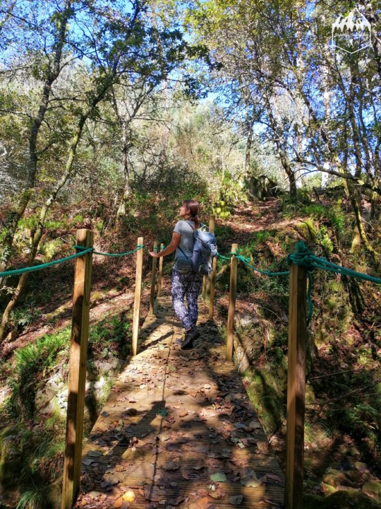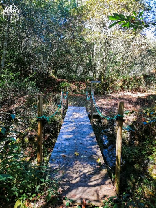 Sempre em bosques e acompanhar o rio chegamos a uma zona onde intercepta outro trilho o PR 1 Rota dos Rios e Levadas (também fiz mas será falado noutro post) vamos atravessar uma ponte de madeira para depois seguir para a Mina dos Mouros.