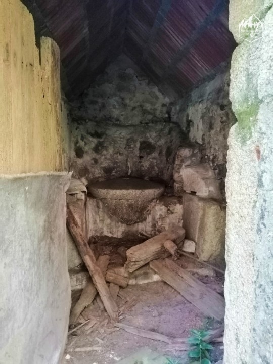 Nesta primeira parte do percurso passamos por dois moinhos em ruínas um deles ainda com a pedra do qual fazia parte do mecanismo onde se processava a moagem do cereal.