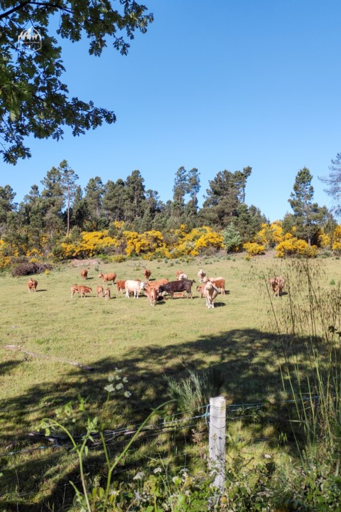 Entre bosques de pinheiros e zonas de agricultura vamos passando até chegar às próximas aldeias, Vale Azedo e Castaide.