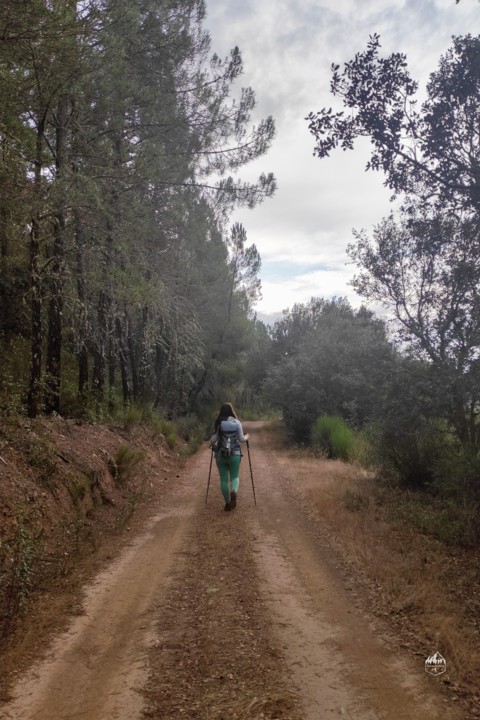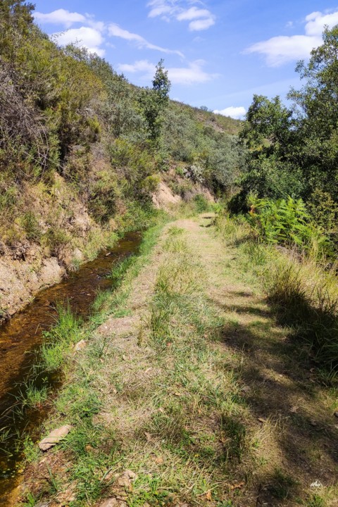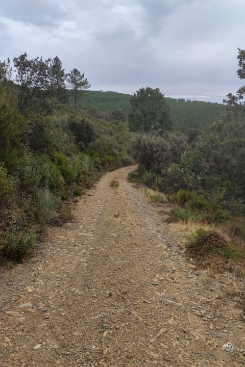 Durante 3 km o caminho segue sempre por estradão de terra batida acompanhada por mata de sobreiros, azinheiras e pinheiros até chegar a um miradouro.