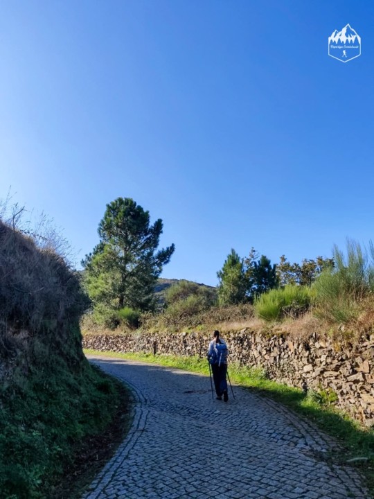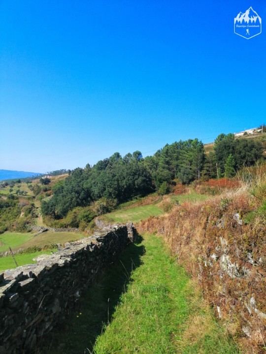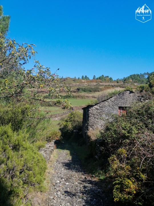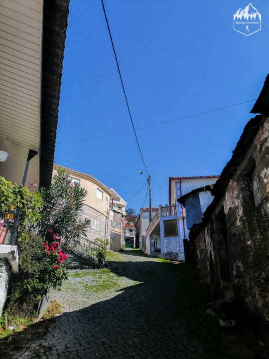 Continuando pelo percurso seguimos por um pequeno bosque de pinheiros até voltarmos a um caminho antigo entre muros e vamos percebendo que estamos a chegar à civilização, as casas rusticas e os seus campos começam a destacar até que chegamos à aldeia de Campanhó.
