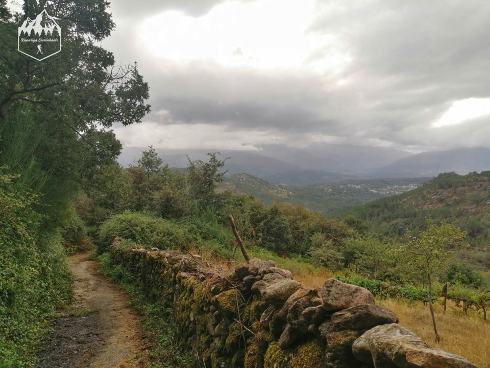 Seguindo o percurso vamos entrar em caminhos de calçada entre muros o que significa que estamos perto da Aldeia de Queguas, a chuva era tanta que não me apeteceu molhar o telemóvel para tirar fotografia à aldeia mas aparece nas imagens do vídeo.