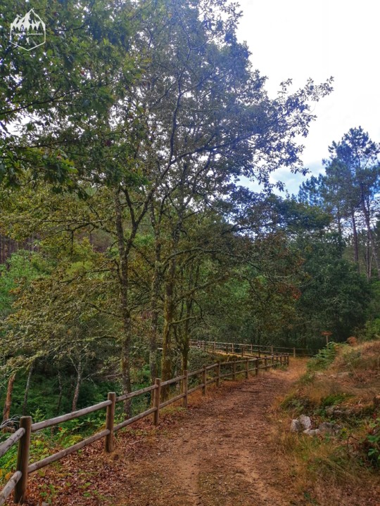 Começando na praia fluvial do Rio Pacin onde tem um espaço com estacionamento e uma área recreativa vamos seguir por um trilho de terra e entrar num bosque onde tem algumas identificações das arvores o que achei lúdico pois é sempre bom saber que espécies vemos.