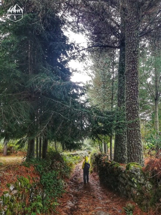 Depois de observar os poços temos que voltar atrás e desta vez vamos atravessar a ponte de madeira e virar para a direita onde temos indicação para "Castro de Os Castelos" que será o nosso próximo ponto de interesse, até lá percorremos a subir o bosque de pinheiros e onde o fetos nos cobrem e faz parecer que estamos numa selva.