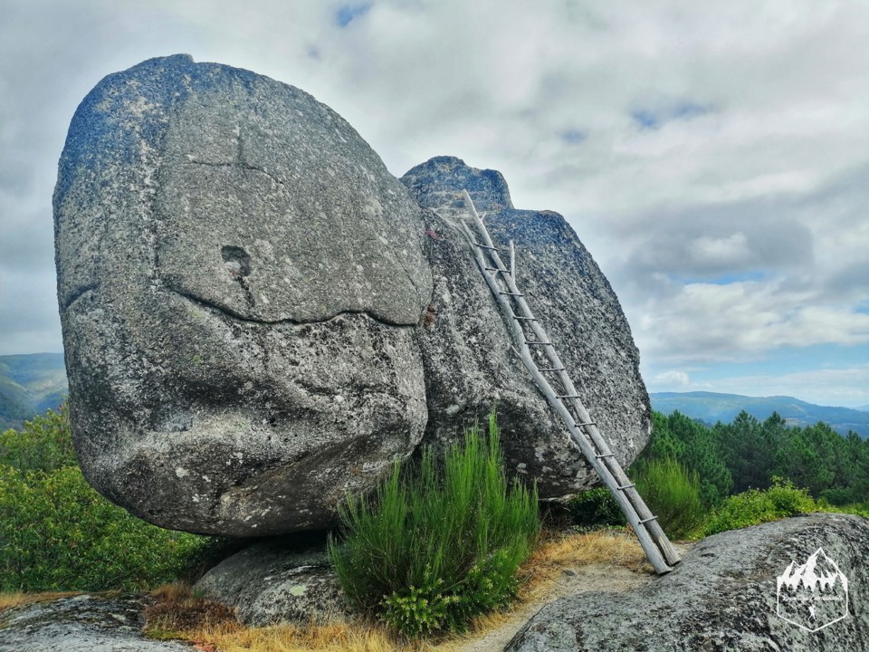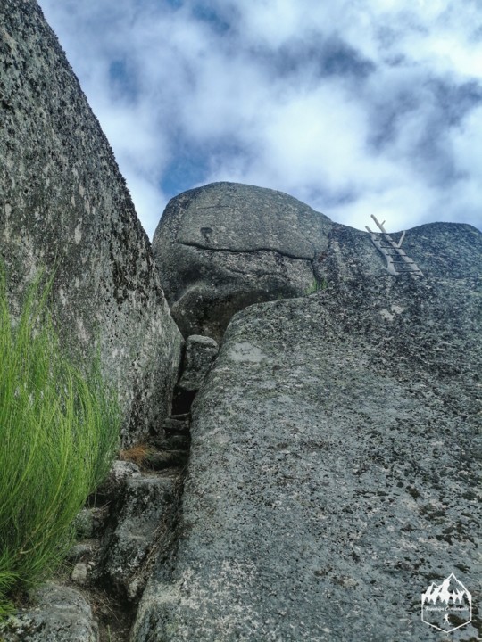 Continuando o percurso vamos voltar para o estradão e seguir desta vez para o Castelo da Pia da Moura. Este sitio agora só resta os penedos naturais que ali já existiam e um vestígio de umas escadas feitas na pedra. Mas ali aproveitaram o afloramento rochoso colocando depois uma torre de construção medieval no topo, topo que era beneficiado pela espetacular vista sobre o parque nacional Peneda-Gerès o que era bom para as defesas.