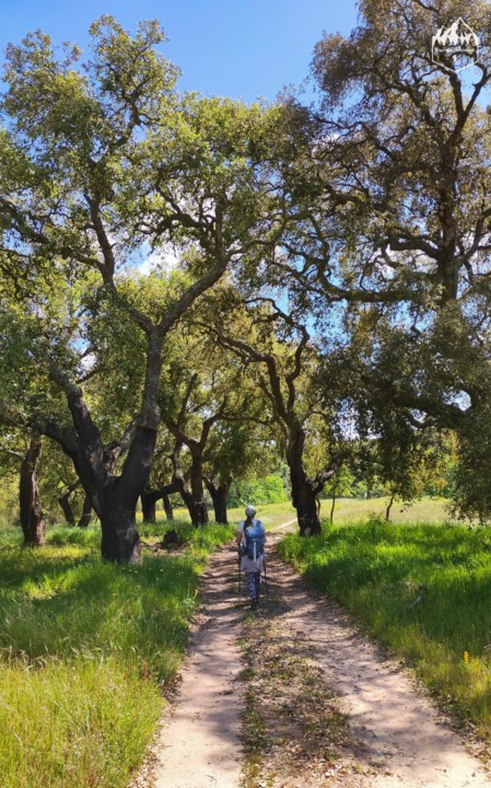 De repente entramos numa zona de sobreiros e com mais sombra portanto dá para protegermos mais do sol.